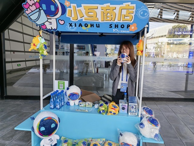在“小互之家”,今年首次推出的“小互”盲盒款也很受大家欢迎,“探星者代表科技与星际旅行,以手中火箭为宝物,穿越广袤的宇宙。探梦者代表语言和绘画领域的人工智能,探索梦与意识的深海,描绘出最美的图景,并用每一种语言写下最美的诗。” 叶纪勇说,他们还推出了七大系列产品,包括常用的无线充电宝、旋转灯、冰箱贴、联名饮品等30余种“小互”衍生品,主打就是好看又好玩,拉满体验值。
