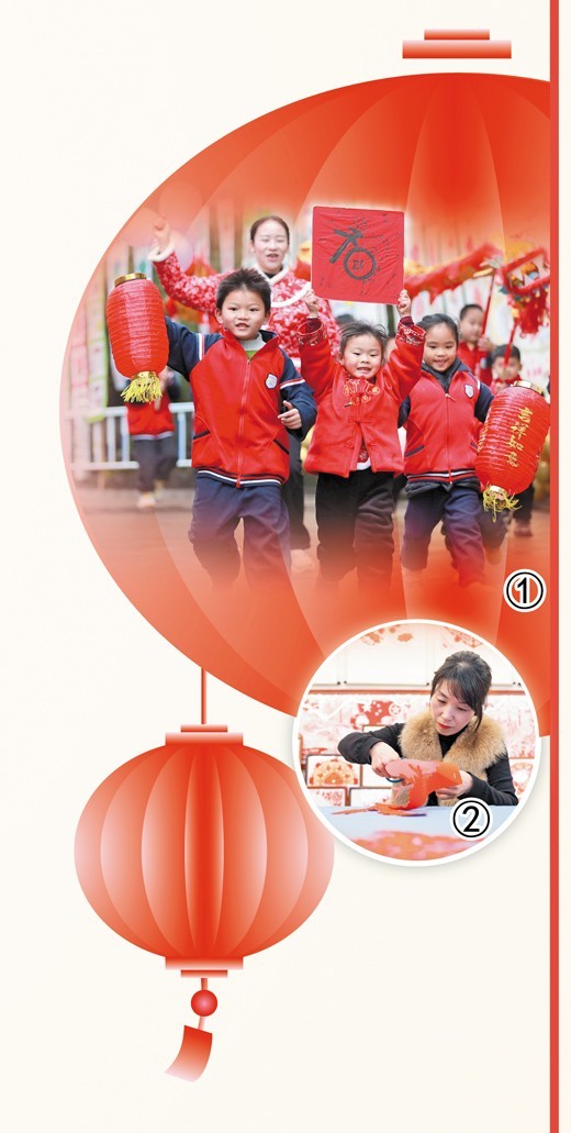 图①:湖南省怀化市通道侗族自治县双江镇一家幼儿园,小朋友们在参加春节亲子游园活动。