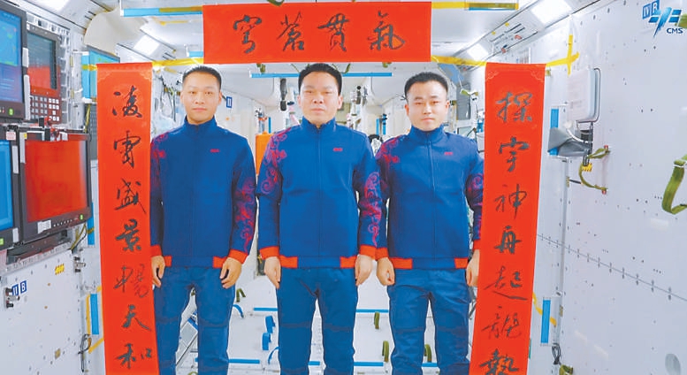 作为我国载人航天工程进入空间站应用与发展阶段后首个在太空过大年的航天员乘组,3名航天员特意穿上了喜庆的“祥云服”,把中国人自己的“太空家园”仔细装扮了一番。