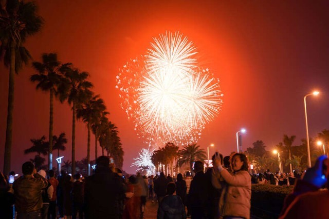 2月10日,厦门举行海峡两岸春节焰火燃放活动。 图片来源 视觉中国