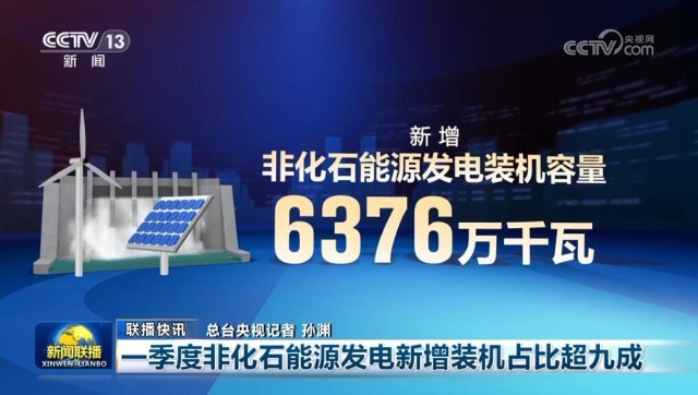 记者从中国电力企业联合会获悉,今年一季度,全国新增发电装机容量6943万千瓦。其中,新增非化石能源发电装机容量6376万千瓦,占新增发电装机总容量的比重为91.8%。电力装机延续绿色低碳发展趋势。