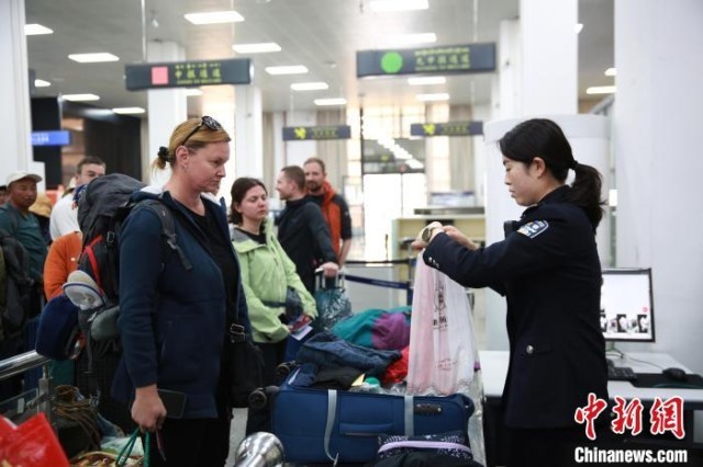 图为“五一”假期,吉隆出入境边防检查站民警正在验放出境旅客。肖富贵 摄