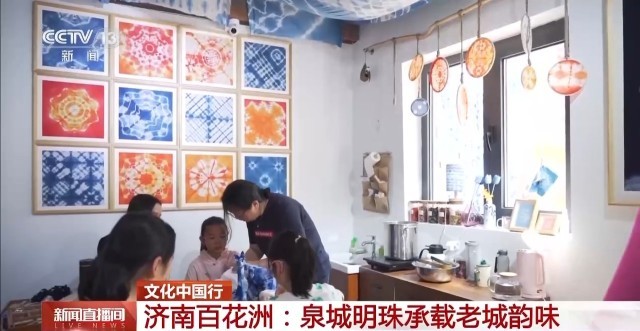 济南泉水与天然染料相结合,诞生了独具泉城特色的扎染技艺。在百花洲历史文化街区,向到访的游客们呈现着代代传承的美好,非遗已经成为这里一张亮眼的名片。