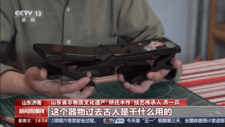 山东省非物质文化遗产“桥氏木作”技艺传承人 乔一兵:它本身是一整块木头六个面,通过锯和凿,形成一个器物,这个器物过去古人是干什么用的呢?当枕头用的,也可以当凳子用,它最大的特点是可以折叠携带,非常方便。传说是鲁班发明的。和众多的优秀的传统技艺一样,它深层次的代表的是中国的一些思想、一些哲学、一些文化在里边,(鲁班枕)核心是平衡和和谐,我觉得我很有必要把它传承下来,发扬光大。