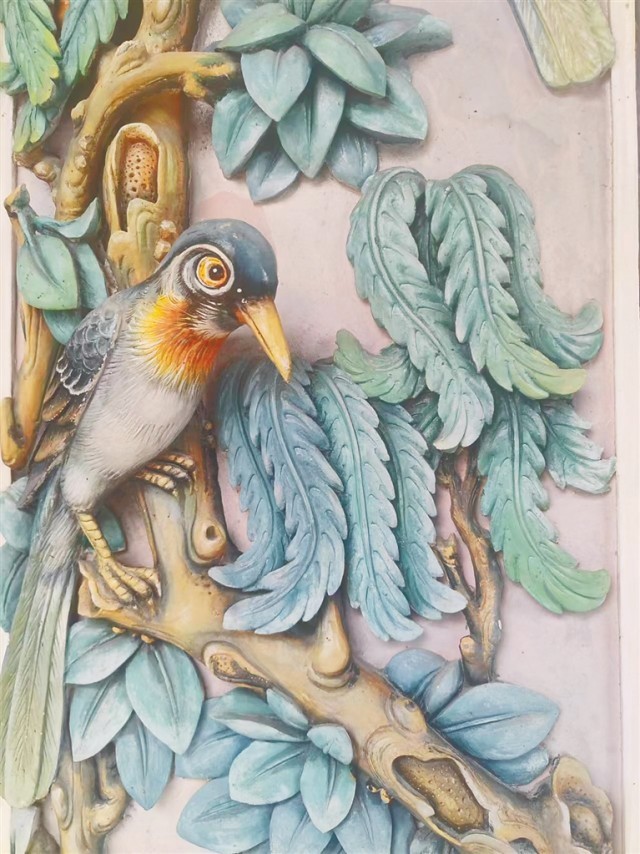在海南的灰塑作品中,留白的运用同样有“以无胜有”的视觉效果。“灰塑作品色彩五彩斑斓,一眼看过去容易产生错乱的感觉,这时候留白就显得很重要。”寰海阁酒店负责人符燕舞说,灰塑作品有明显的写实风格,所呈现的物象纷繁多彩。如果要将灰塑作为一种艺术品保留下来,用留白的手法为作品增添美感十分必要。