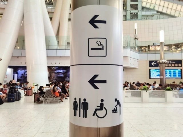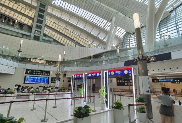 旅客跟随指示标志前往通关区域。