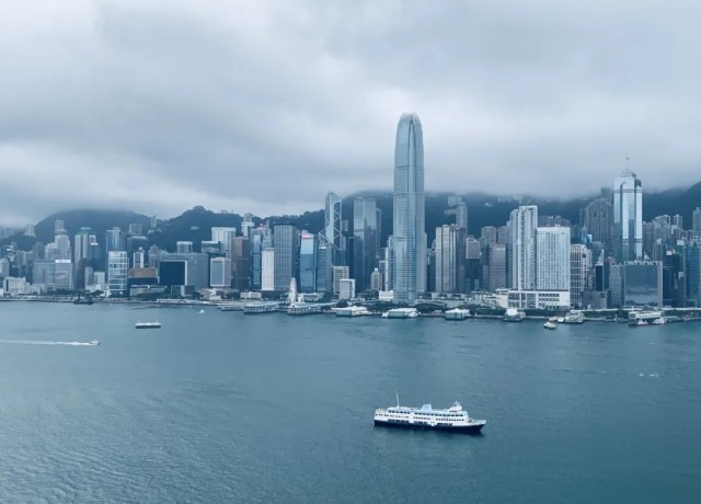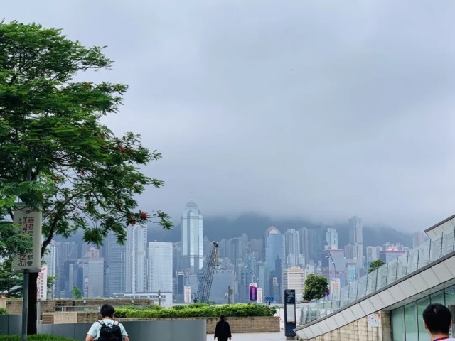 从香港西九龙站出站后,即可看到维多利亚港。
