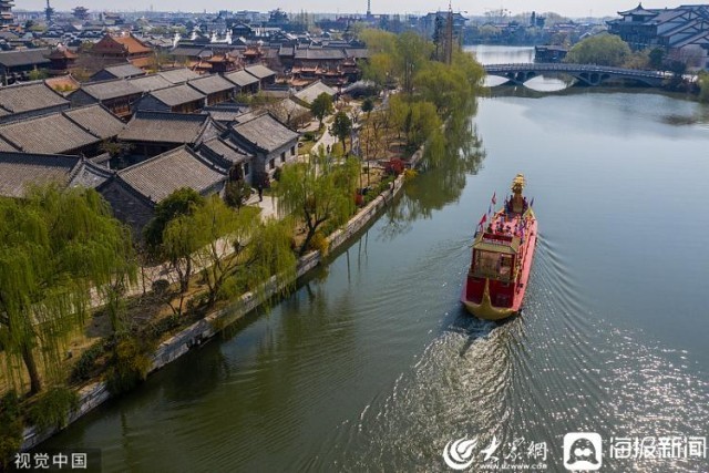 台儿庄古城坐落于枣庄市东南,处于京杭大运河的中心点。来源:视觉中国