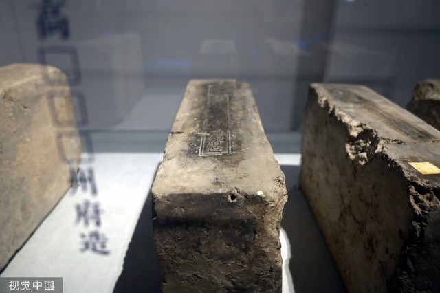 2020年12月11日,在中国国家博物馆,舟楫千里——大运河文化展正在展出。图为临清贡砖。