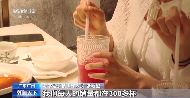 老字号茶楼工作人员 张新望:现在很多年轻人来到这边,他们基本上都会点芭乐水果茶,我们每天的销量基本在300多杯。