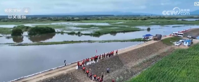 受上游来水影响,乌苏里江饶河段水位持续上涨,防汛形势严峻。预计乌苏里江饶河段将于8月13日出现洪峰,饶河县一千多名干部群众坚守防汛一线。在堤坝上,大型机械往来穿梭,将泥沙和石块运送到指定位置,工作人员持续对堤坝进行加固,并24小时巡查堤坝,发现险情及时处理。