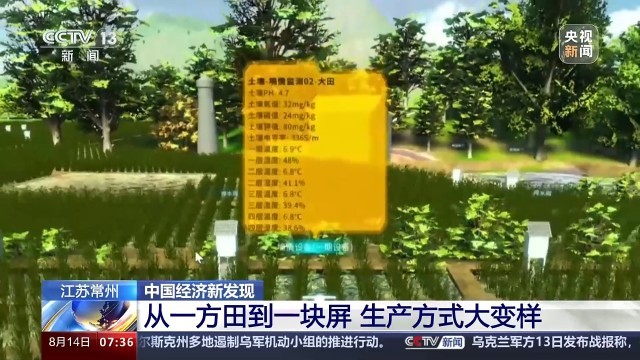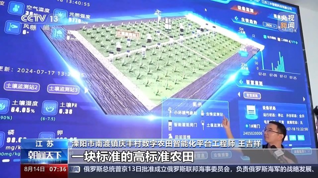 总台央视记者 蒋树林:和以往我们下田看地不一样,今天我们看的这“一方田”是一块数字大田,大家来看,这就是庆丰村的数字农田智慧化平台。现在大家看到这个模块,就是我们数字大田的样子。