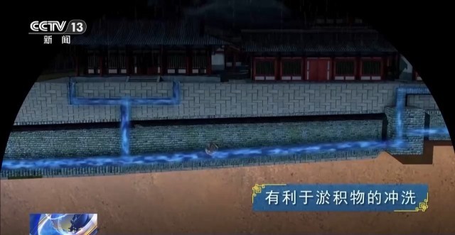 福寿沟博物馆工作人员 曾鑫:福寿沟就是古代的城市排水系统。古人的排水智慧在于借势,因此在修建排水沟时,会根据古城内各个区域的高低,修建大小不同的沟渠,来增加水的流速。福寿沟渠的走向,由北向南看,像小篆当中的“福”字,由东往西看,像小篆当中的“寿”字,因此叫福寿沟。