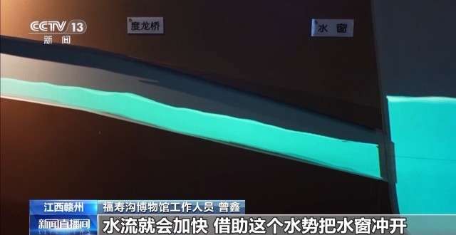 福寿沟博物馆工作人员 曾鑫:度龙桥靠近沟体的高度是2.5米高、4米宽,到出水口的位置,横切面整整缩小了5倍,它的坡度也有增加,水流就会加快,借助水势把水窗冲开,而且会把沟渠里面的沉积物排出到城外的江中,从而保持福寿沟的畅通。