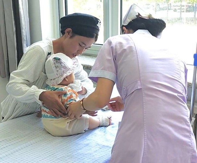 8月10日,宁夏回族自治区中卫市海原县,宁夏回族自治区人民医院宁南医院医护人员护理婴儿。中青报·中青网记者焦敏龙/摄