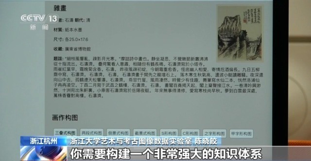浙江大学艺术与考古图像数据实验室 陈晓皎:在前期的数据处理方面,古画是比较复杂的,不同的画家、不同的笔触都有自己不同的风格,然后以及像这种图像数据,你需要构建一个非常强大的知识体系,才能对这个数据深入挖掘研究。