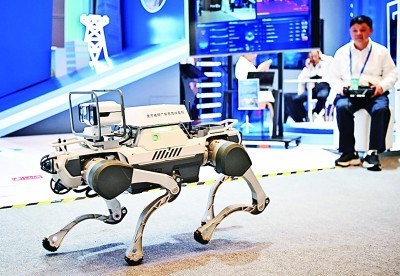 网络安全博览会上的企业展示电网巡线机器狗。新华社记者 邓华摄