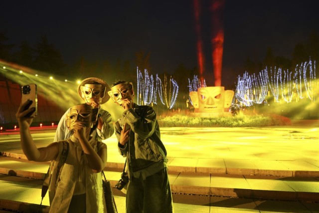 古老遗址响起音乐剧的吟唱,灯光秀中映出久远的古蜀神鸟……国庆期间,成都金沙遗址博物馆推出“夜游金沙·穿越古蜀——博物馆情景式导览演出秀”,通过情景演绎、深度讲解、文艺演出、光影氛围等多元形式,带领观众感受古蜀文明的魅力。