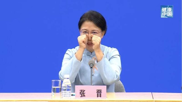 张晋在发布会上示范如何用大拇指两侧搓揉迎香穴。图片来源:微信公众号“健康中国”