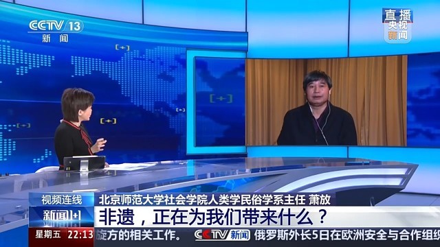 北京师范大学社会学院人类学民俗学系主任 萧放:春节就是大年,大年是年年过,当然年年都过得喜庆热闹,今年因为是成为人类非遗之后的第一个春节,当然我们就过得更加热闹,更加红火,更加喜庆。但如何让我们热闹、喜庆、红火实现呢?就需要我们更多的人自觉地去参与这个年节活动,或者各个地方政府创造条件,让我们年节的氛围更加浓郁,让我们年节喜悦的气氛更加热烈,然后我们可能说既然是人类非遗之后的第一个春节,我们是不是有更多的传统热闹的方式,能够让我们进行呢,我想这是我们地方政府管理部门可以考虑的问题。