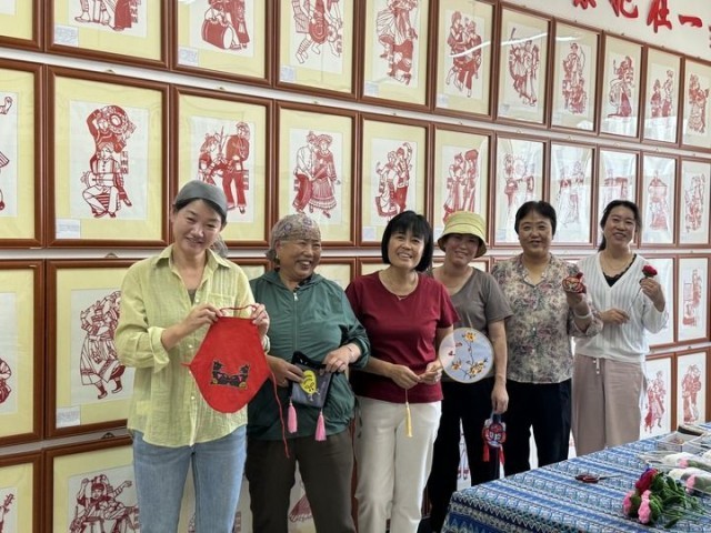 宁夏固原市西吉县吉强镇团结社区居民学习非遗技艺。(西吉县委宣传部供图)