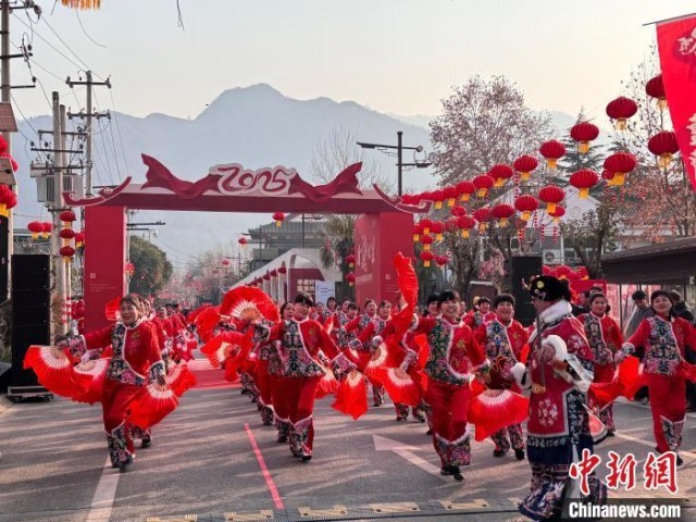 中新网西安1月17日电 (张一辰 李一璠)激昂的戏曲碗碗腔、喜庆的醒狮闹春、有趣的华山戏法……17日,一场融民俗表演、美食品鉴、特色市集于一体的乡村新春文化盛宴,在秦岭山下精彩呈现。