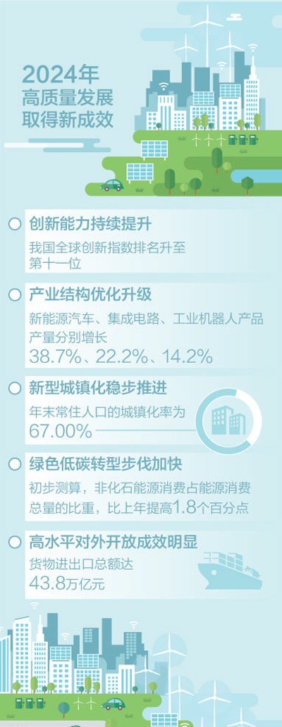 “2024年我国经济克服了复杂内外环境带来的各种困难和挑战,顺利实现了主要预期目标任务,推动了经济质的有效提升和量的合理增长,高质量发展成色十足,成绩实属不易。”在国务院新闻办17日举行的新闻发布会上,国家统计局局长康义说。