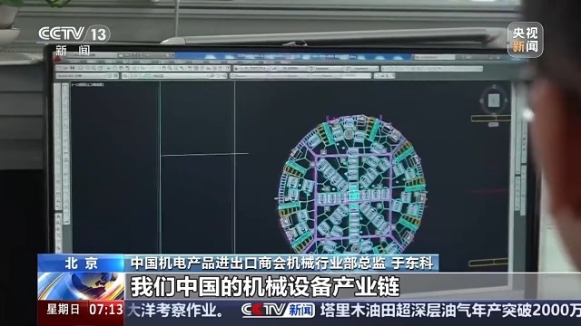 中铁装备集团海外分院副院长 尹跃峰:这台设备配备全新的泥水平衡系统和先进的智能控制系统,能够在复杂的地质条件下实现稳定、高效掘进。