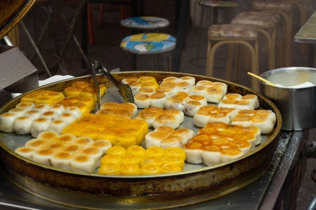 2024年2月5日在哈尔滨红专街早市一处摊位拍摄的粘豆包。