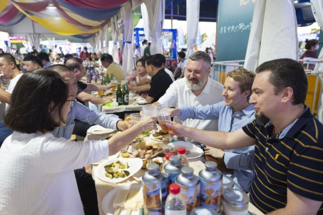 2022年8月16日,顾客在哈尔滨国际啤酒节现场品尝啤酒。