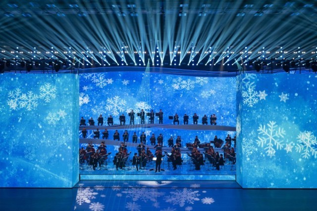 2009年2月18日,第24届世界大学生冬季运动会开幕式在黑龙江省哈尔滨市国际会展中心体育馆举行。这是开幕式上的文艺表演。