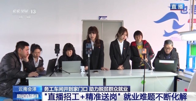 在记者旁边,有一个正在进行网上招工的直播。记者所在的新车间用工量在650人,但是现在工人只有200人,由于许多群众还不知道车间用人需求,所以当地通过网上直播和社区宣传等方式进行招工。这里消息一发出,设立在门口的登记点就有人来报名了。