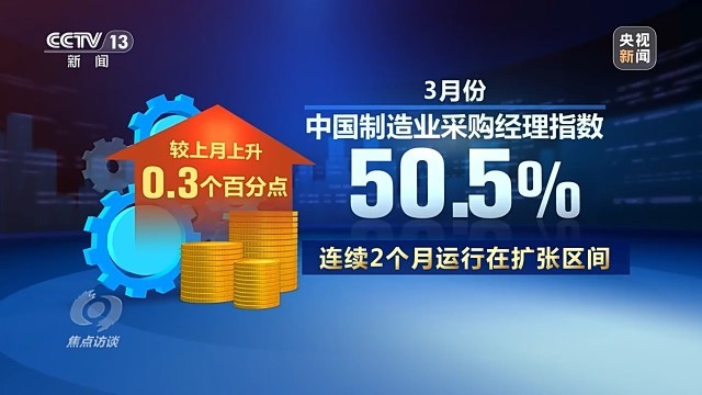 作为重要的经济监测先行指标,采购经理指数,也就是PMI能够及时捕捉经济变化趋势,反映一个国家或地区经济运行的景气状况。3月份,我国制造业采购经理指数升至50.5%,比上月上升0.3个百分点,连续两个月运行在扩张区间,制造业景气水平继续回升。同时,挖掘机指数、电商物流指数等多个高频指标也释放出经济回升向好的积极信号。