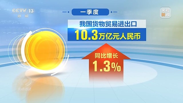 一季度,我国货物贸易进出口10.3万亿元人民币,同比增长1.3%。进出口规模创历史同期新高,连续8个季度超过10万亿元。其中,出口规模突破6万亿元,实现6.9%的较快增长,在压力下展现了较强的韧性。