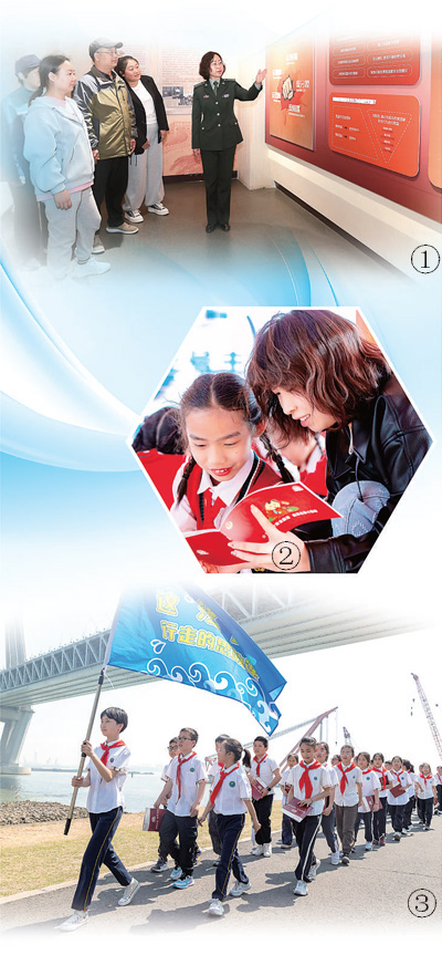 图③:江苏常州新北区罗溪中心小学学生开展国家安全主题行走的思政课活动。