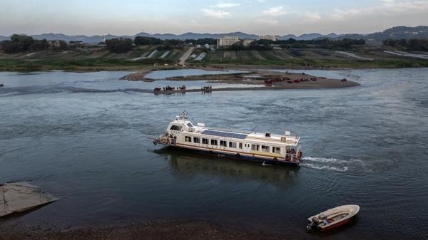2025年4月20日,“背篓航线”向重庆巴南区中坝岛驶去。(无人机拍摄)