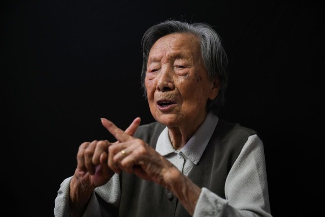 ↑2025年5月21日,夏淑琴控诉侵华日军罪行。