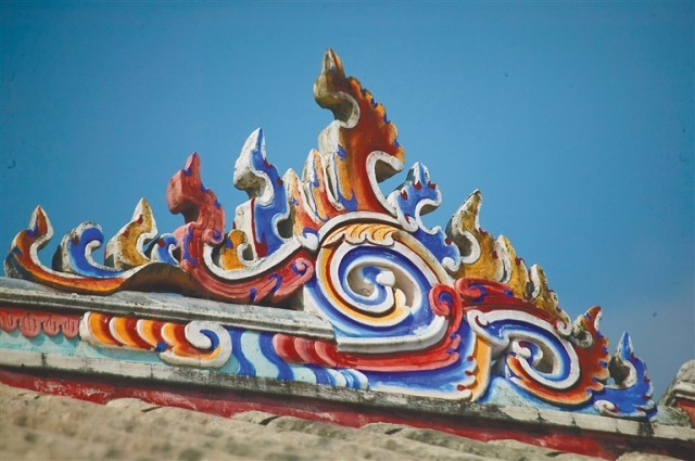 村中最古老、最具代表性的建筑当属“九牧堂”。推开厚重的黑檀木门板,时光的气息扑面而来。房梁屋脊上精美的雕龙画凤木刻虽已蒙尘,但依稀可见往昔风采,梁架木构件、公阁等处的雕刻细节,无声诉说着昔日工匠的精湛技艺。抬头仰望,正厅高悬的“九牧堂”匾额,承载着家族的荣光与传统。“祖上林披在唐朝时,九个儿子都当了州官(州牧),门庭显赫。”村民林方汇仰望着匾额说,“明代先祖从福建莆田迁来时,就把这堂号带到了海南。”