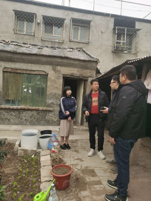 吕明凤(左一)走访社区了解相关情况。受访者供图