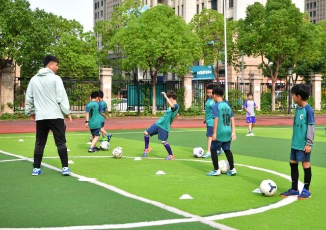 图为学生正在上暑期足球课。 图片由包河区委宣传部提供
