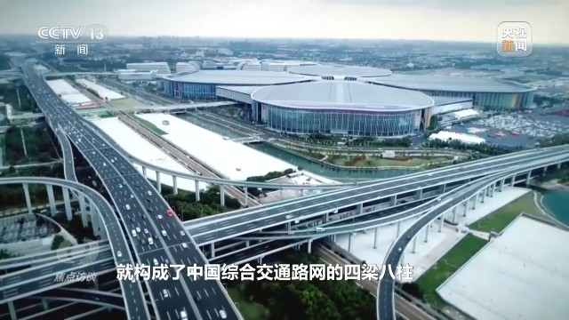 国家发展改革委综合运输研究所所长 李连成:“‘6轴’就是把中国经济社会发展当中的四极连接起来了,此外我们的‘7廊8通道’就把我们国家主要城市群乃至我们周边的重要口岸连接起来了。我们的‘6轴7廊8通道’就构成了中国综合交通路网的四梁八柱,起到了一个主骨架的作用。”