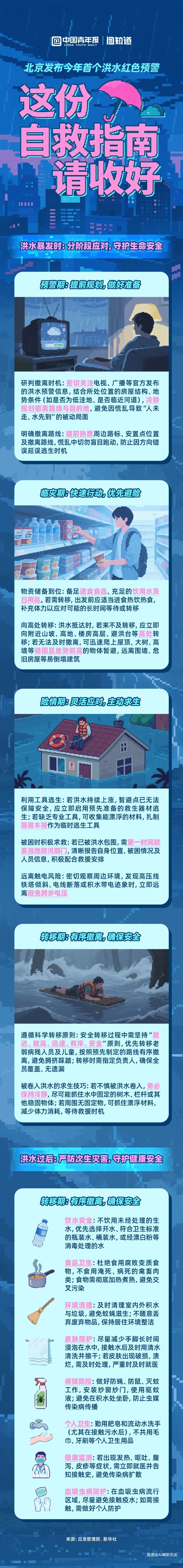 图知道|北京发布今年首个洪水红色预警 读图速览遇险自救指南
