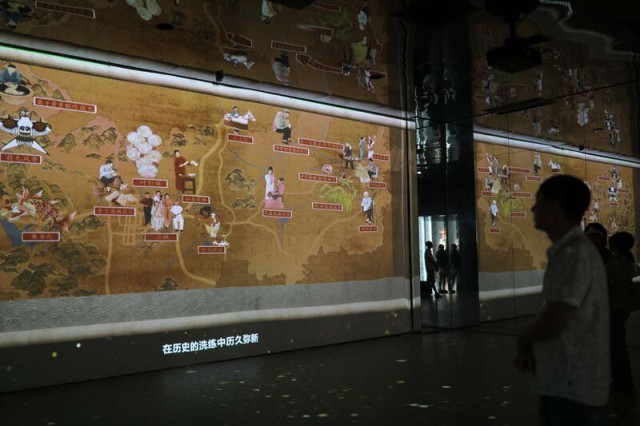 8月6日,湖州德清城市馆,游客观看数字展览了解德清人文历史。中青报·中青网记者 孔斯琪/摄