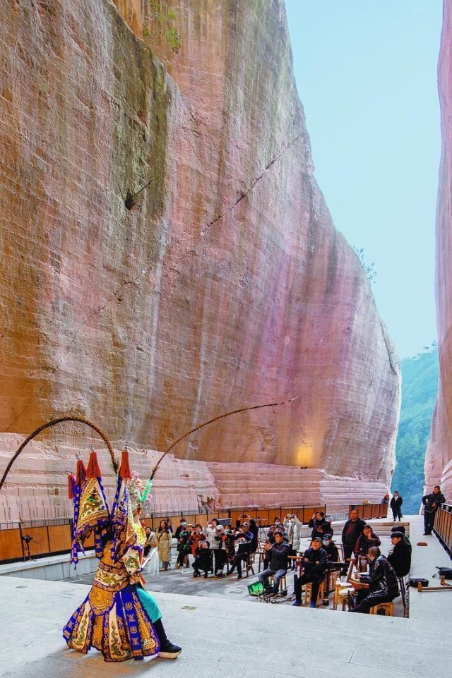 岩宕剧场中的婺剧表演。缙云县委宣传部供图