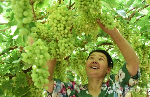进入7月后,吐鲁番的葡萄陆续成熟,种植户在采摘成熟的葡萄。刘健摄