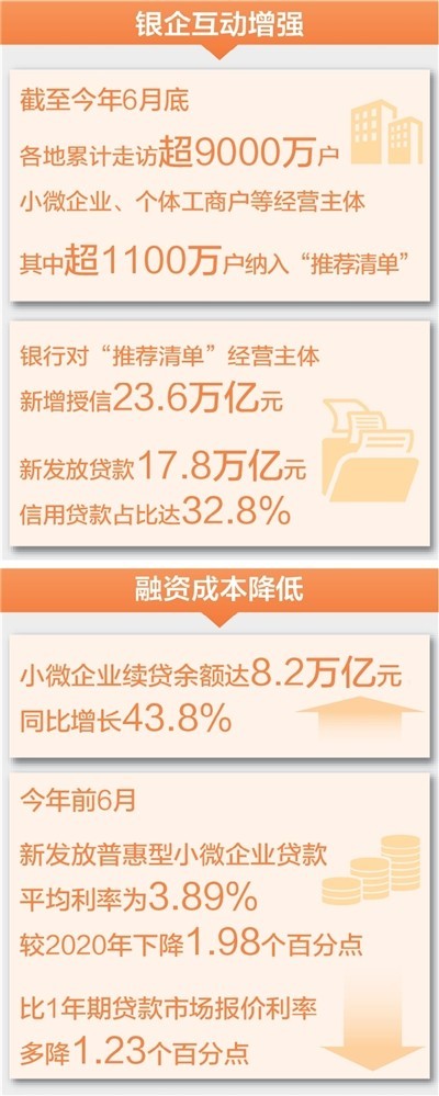 今年前6月,全国新发放普惠型小微企业贷款平均利率为3.89%,较2020年下降1.98个百分点,比1年期贷款市场报价利率(LPR)同期降幅高出1.23个百分点。