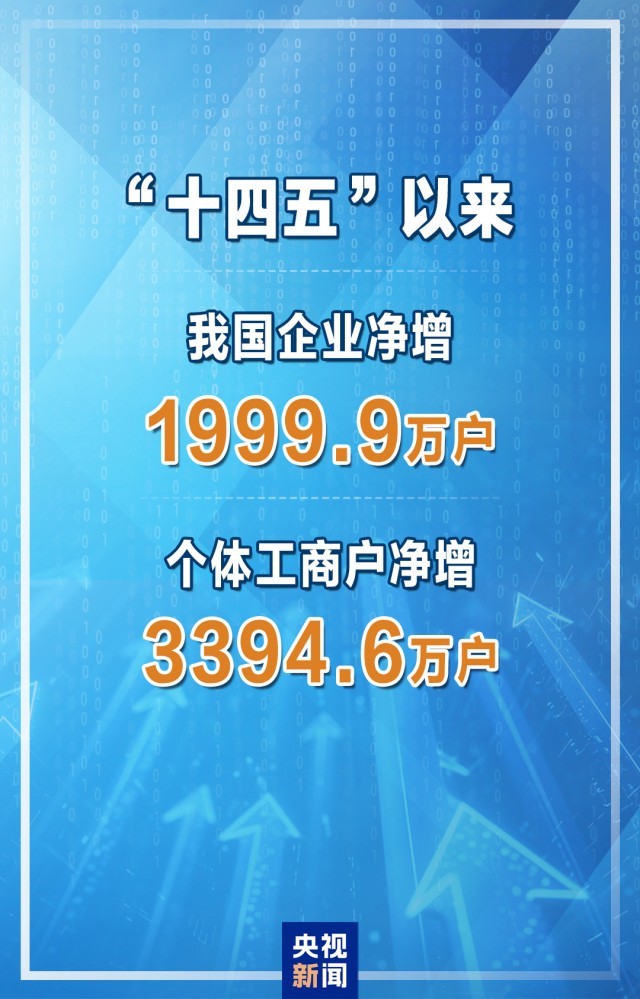 市场监管总局局长罗文介绍,“十四五”以来,我国企业净增1999.9万户,个体工商户净增3394.6万户。