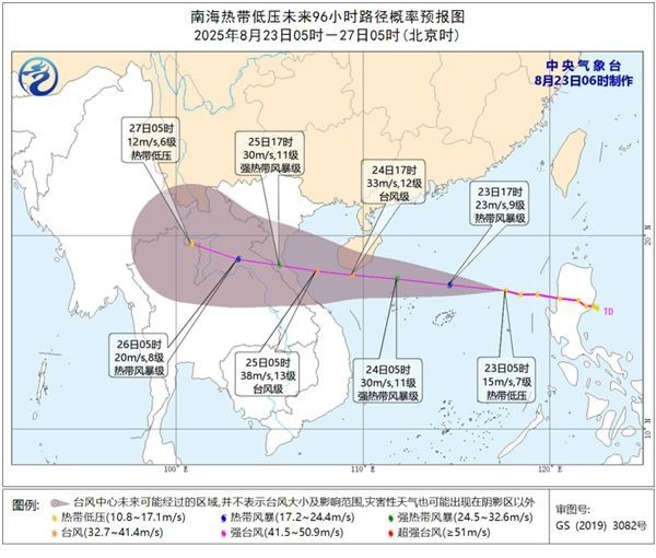 中国天气网讯 中央气象台8月23日06时继续发布热带低压预报: