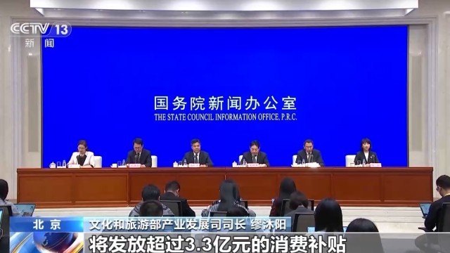 文化和旅游部产业发展司司长 缪沐阳:我们将正式启动“百城百区”文化和旅游消费三年行动计划,协调中国银联、金融机构、平台企业推出消费券、支付满减等优惠以及入境旅游消费便利措施。各地也陆续出台扩大文旅消费专项政策,将发放超过3.3亿元的消费补贴。