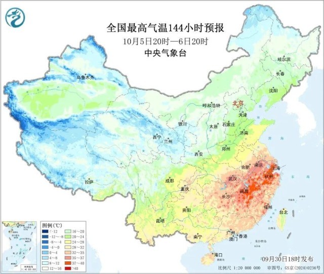 不同于北方的寒凉,假期期间江南、华南等地仍是秋老虎“主场”,闷热难退。尤其湖南、江西、浙江、福建、广东等地还可能出现35℃及以上的高温天气。